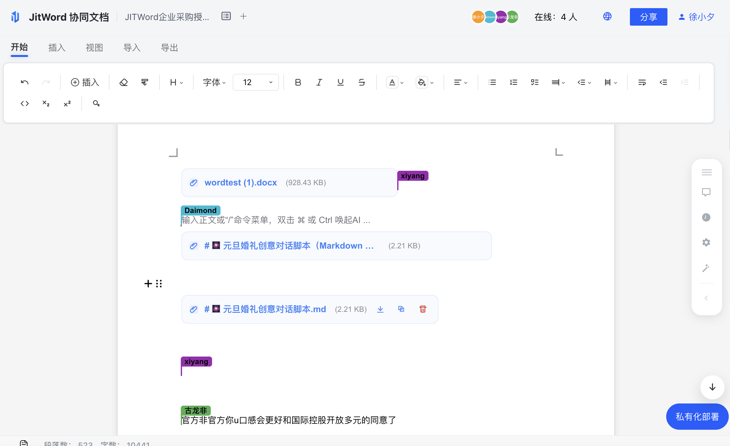 "JitWord的协作能力非常强大,100+人同时在线编辑毫无压力。私有化部署让我们的数据完全可控,这对于企业来说至关重要。"