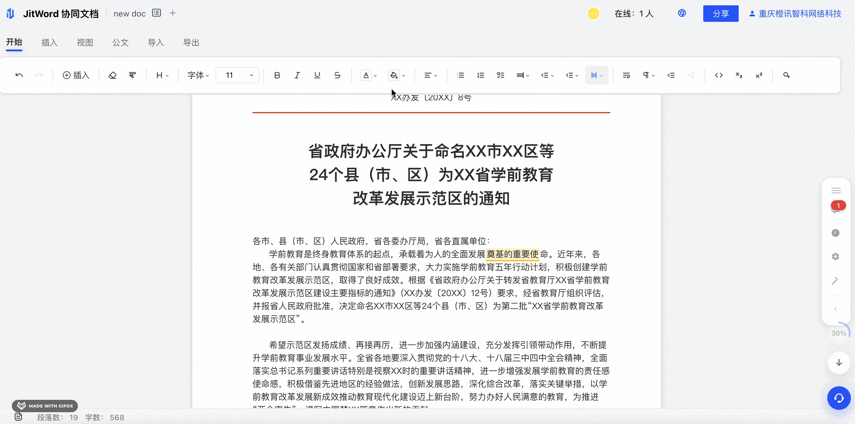 支持主流的文档编辑功能,包括字体、字号、行间距、字间距、颜色、格式刷等操作